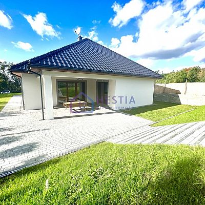 Dom posiada dach kopertowy, pokryty dachówką ceramiczną, zamontowane okna pcv 3 szybowe z roletami, drzwi wejściowe na taras przesuwne, wybudowany z materiałów wysokiej jakości oraz wszystkie elementy wykończenia zrobione z dużą starannością.