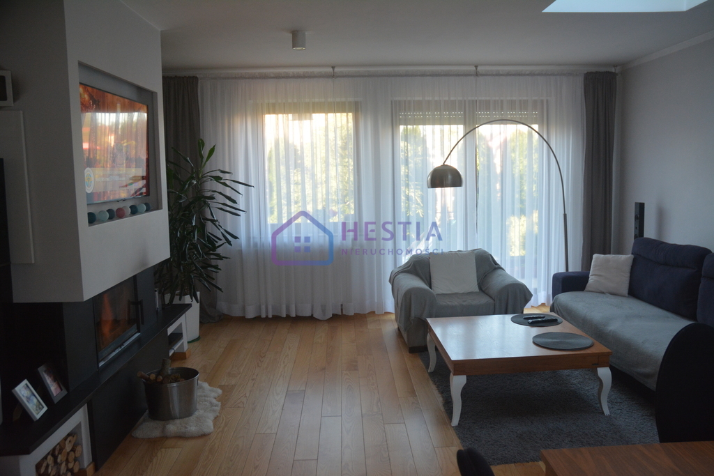 - Salon z kominkiem oraz bezpośrednim wyjściem na taras