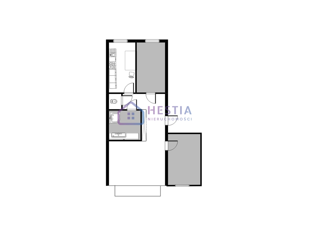 - oddzielnej widnej kuchni z meblami w zabudowie