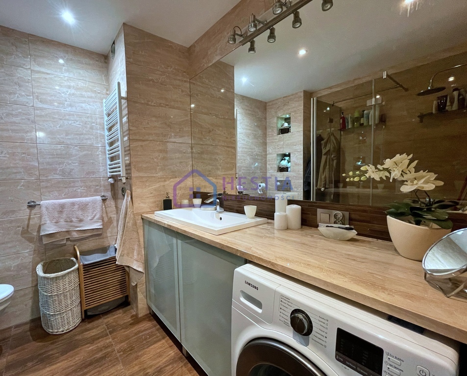 - nowoczesna łazienka z przestronną kabiną prysznicową,