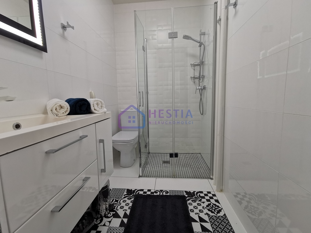 --> Łazienka (kabina prysznicowa, umywalka, toaleta).